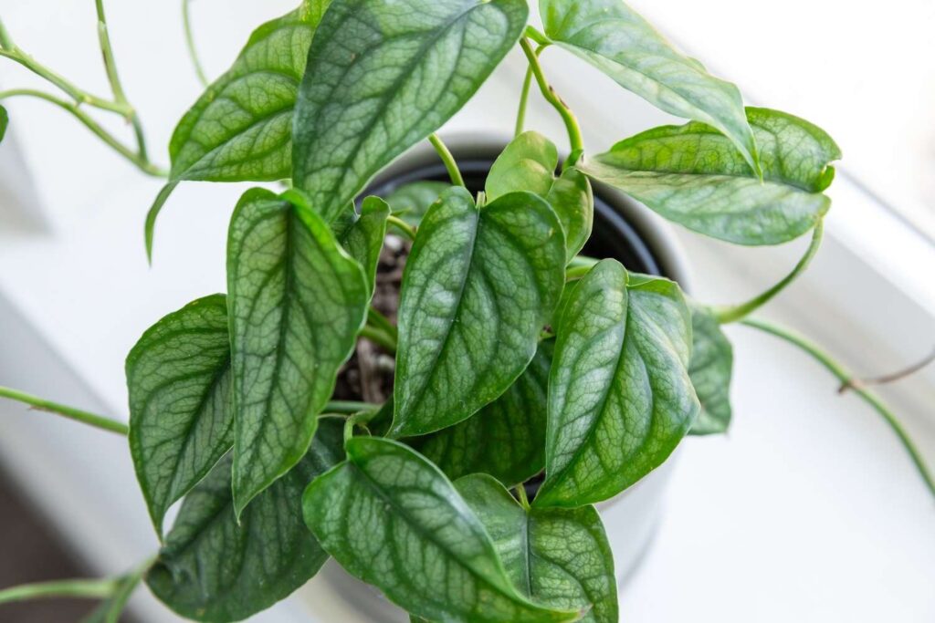The silver juvenile stage looks stunning trailing from a hanging basket — very ethereal and light. Once mature, climbing up a pole turns it into a bold statement plant that fills vertical space beautifully.